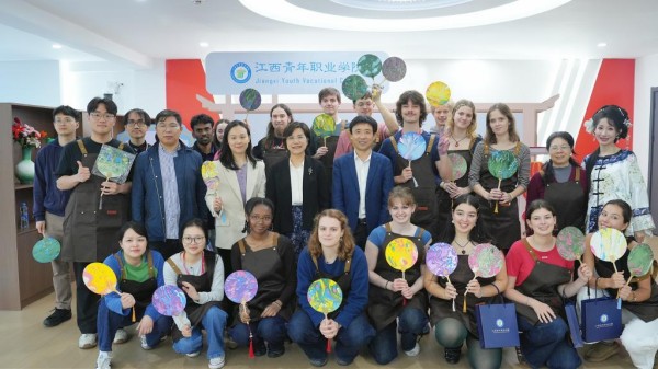 近日,江西青年职业学院接待了来自英国、韩国、印度、以色列、越南、马来西亚6个国家的北京大学访赣留学生代表团,举办了赣域非遗体验活动。江西省人民对外友好协会友好城市工作部部长曾广福,学校党委书记罗来松,党委委员、副院长刘英与中外师生参与了活动。