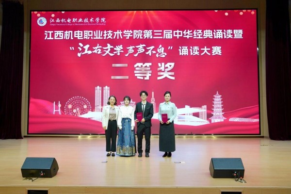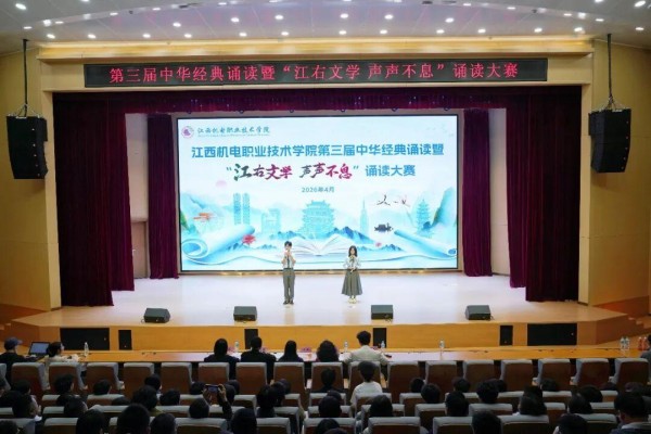近日,江西机电职业技术学院第三届中华经典诵读暨“江右文学 声声不息”诵读大赛在赣新校区报告厅举行。学校党委书记季强,党委委员、副校长朱林及各党(总)支部书记与300余名师生代表齐聚一堂共赴这场跨越时空的文化之约。