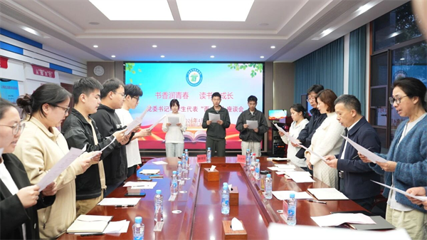 座谈会伊始,全体与会师生共同观看了习近平总书记讲述读书心得的微视频《读书之美|“读书已成为我的一种生活方式”》。视频生动阐释了读书对于个人成长与民族发展的重要意义,令在场师生深受触动。大家一致表示,要自觉将阅读融入日常,让书香涵养青春。