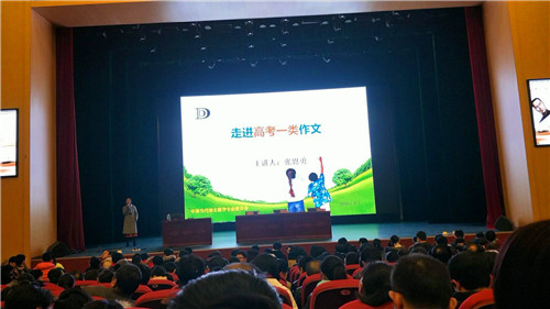研讨会的主讲嘉宾为中国现当代文学专业委员会张恩勇老师。张老师以《走进高考一类作文》为题给现场师生指点迷津,他风趣幽默,不时与师生进行互动,剖析深入浅出。
