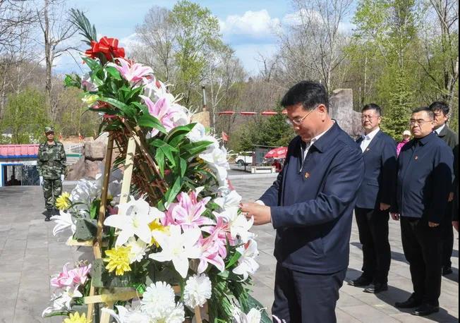 29日下午,全体读书班学员来到桦甸“东北抗联蒿子湖密营”,参观东北抗联杨靖宇将军革命遗址,学习东北抗联历史,感受红色文化,传承红色基因。在杨靖宇将军的雕像前,全体学员静默肃立,向杨靖宇将军敬献花篮,党委书记胡越平在花篮前驻足凝视,仔细整理缎带。全体学员面向党旗庄重地举起右拳,重温入党誓词,“为共产主义奋斗终身”的誓言响彻在山林间。
