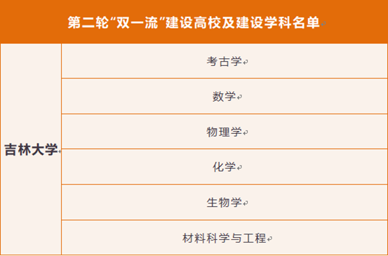 2月14日,教育部官网发布了《教育部 财政部 国家发展改革委关于公布第二轮“双一流”建设高校及建设学科名单的通知》,公布了第二轮“双一流”建设高校及建设学科名单和给予公开警示(含撤销)的首轮建设学科名单。吉林大学入选第二轮“双一流”建设高校,考古学、数学、物理学、化学、生物学、材料科学与工程6个学科入选第二轮“双一流”建设学科,其中生物学学科为第二轮“双一流”建设新增学科。
