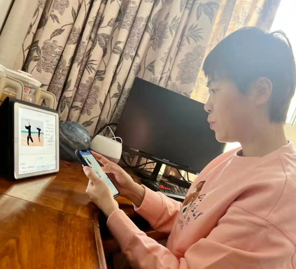 胡古月老师在家里录制的示范动作讲解视频,让学生沉浸式体验太极拳的魅力。