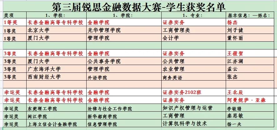 喜报:长春金融高等专科学校学生在全国第三届锐思金融数据挑战赛中荣获一等奖