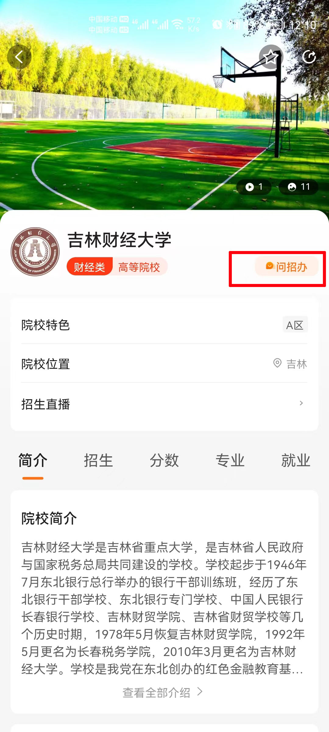 中国教育在线掌上考研APP页面中搜索“吉林财经大学”,进入详情页之后点击“问招办”模块,即可在线咨询。
