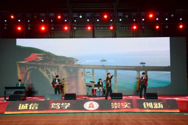 开场的《公路之歌》直接点燃了整个现场。整场晚会节目种类多样,紧接着古典舞、现代舞、吉他弹唱、歌舞联排等轮番上演,每一个节目都精彩纷呈,新生辅导员的一曲《燃唱未来》展现了我校教师的青春风采,赢得观众的欢呼啦喊。现场观众情绪高涨,欢呼不断,随着音乐挥舞荧光棒。晚会在《少年中国说》中结束。