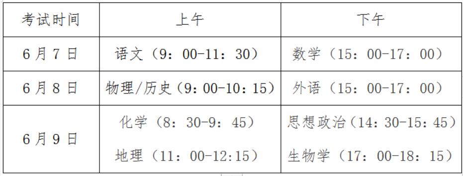 (二)考试时间安排。全国统考科目由教育部命题,按教育部规定时间组织考试。选择性考试科目由吉林省自主命题,每门考试时长均为75分钟,与全国统考科目的考试同期安排。如全国统考科目有调整,选择性考试科目的考试安排相应调整。具体考试时间安排如下: