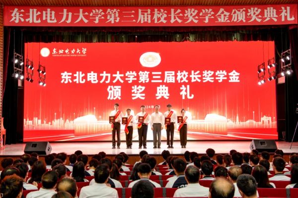 6月17日,东北电力大学在全国重点文物石头楼群礼堂隆重举行第三届校长奖学金颁奖典礼。东北电力大学党委书记张静辉、校长蔡国伟出席并为校长奖学金获得者颁发奖章和奖杯,党委副书记詹丽萍、李忱,纪委书记侯奎岩,党委常委、宣传部部长刘辉参加颁奖典礼并为校长奖学金提名奖获得者颁发证书。詹丽萍宣读了《东北电力大学关于表彰第三届校长奖学金获得者及提名奖获得者的决定》,校长奖学金获得者所在学院院长宣读获奖者颁奖词。