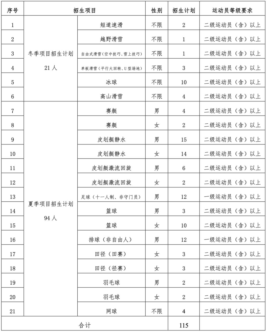 2025年拟定招生115人,最终计划数以国家体育总局审批公布为准。