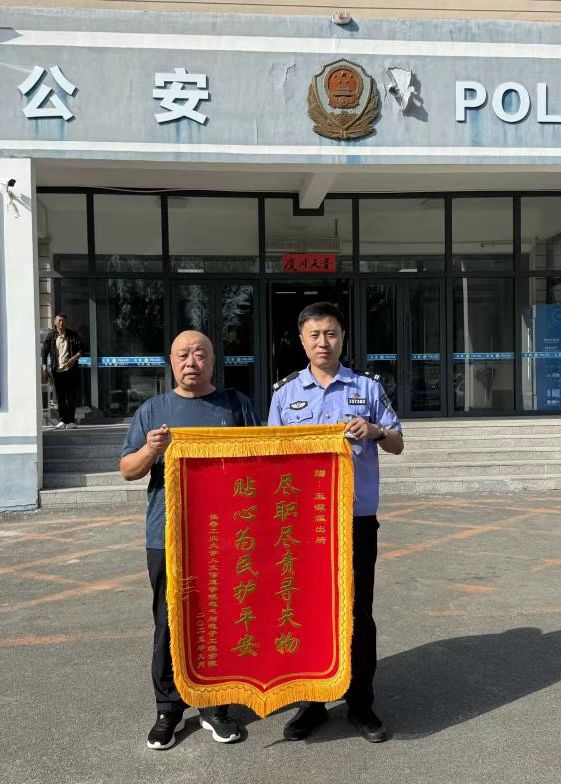 学院将两面镌刻着“尽职尽责寻失物 贴心为民护平安”“神速破案显警威 为民服务暖人心”的锦旗,郑重交付民警手中,致敬警校联动守护学子权益的责任担当。