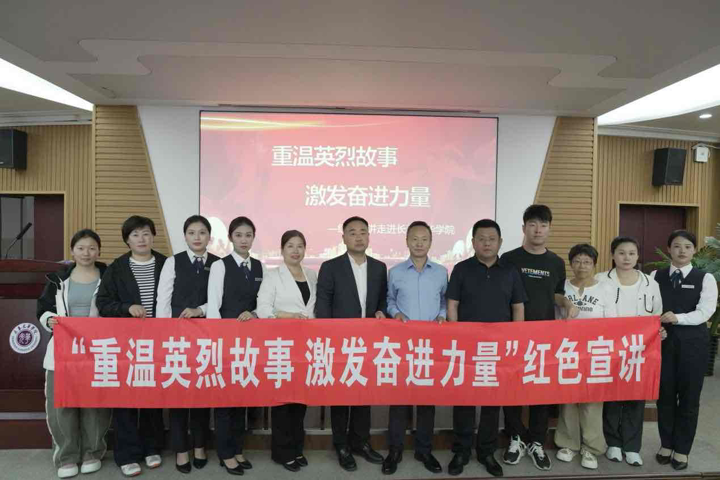 下午1点,长春市革命烈士陵园红色宣讲团在英华楼214教室开展“重温英烈故事,激发奋进力量”红色主题宣讲,讲解员周韬、李春歌、于微微为师生们讲述关于长春市革命英烈事迹。长春市革命烈士陵园管理中心副主任李忠伟,长春光华学院党委书记、督导专员闫峰,长春光华学院党委副书记兼纪委书记、副校长李春生等领导与同学们一同聆听英烈故事,在庄严的氛围中接受了一次爱国主义教育的洗礼。