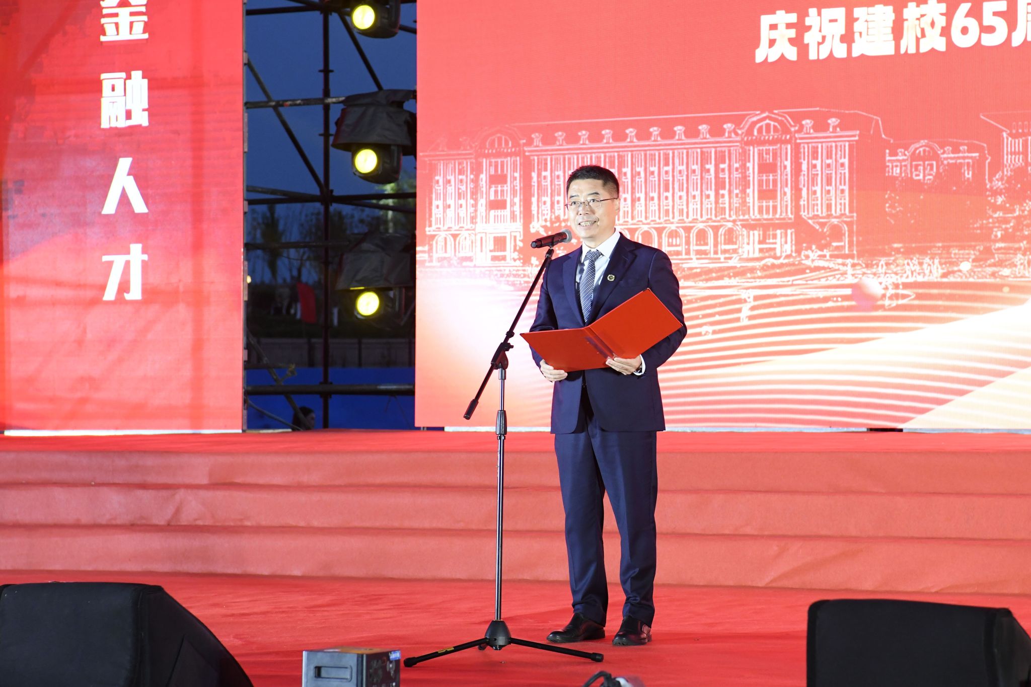 开场舞《鼓舞盛世》拉开晚会序幕。在热烈的掌声中,党委书记王登攀上台致辞。他指出,学校始终与时代同频共振,锚定“金融界黄埔、银行家摇篮”的初心,以培养高素质技术技能人才、服务行业需求与吉林全面振兴为己任,并回顾了学校65年来在办学转型与特色专业体系构建、红色基因传承与党建引领、师资队伍建设与专业集群优化、产教融合深化、教研创新与社会服务、人才培养与校友培育等方面取得的丰硕成果。他向为学校发展倾注心血的历任校领导、全体教职工及心系母校的校友表示衷心感谢,向4300余名2025级新同学的到来表示热烈欢迎。勉励新生从学校厚重历史中学会坚韧,永葆拼搏激情,延续军训中展现的坚韧意志,珍惜大学时光,继承金专精神,在为人上立德修身、志存高远,在学习上勤奋进取,在生活中乐观向上,在实践中勇于担当,用青春、智慧与汗水成长为国家和社会需要的栋梁之材。