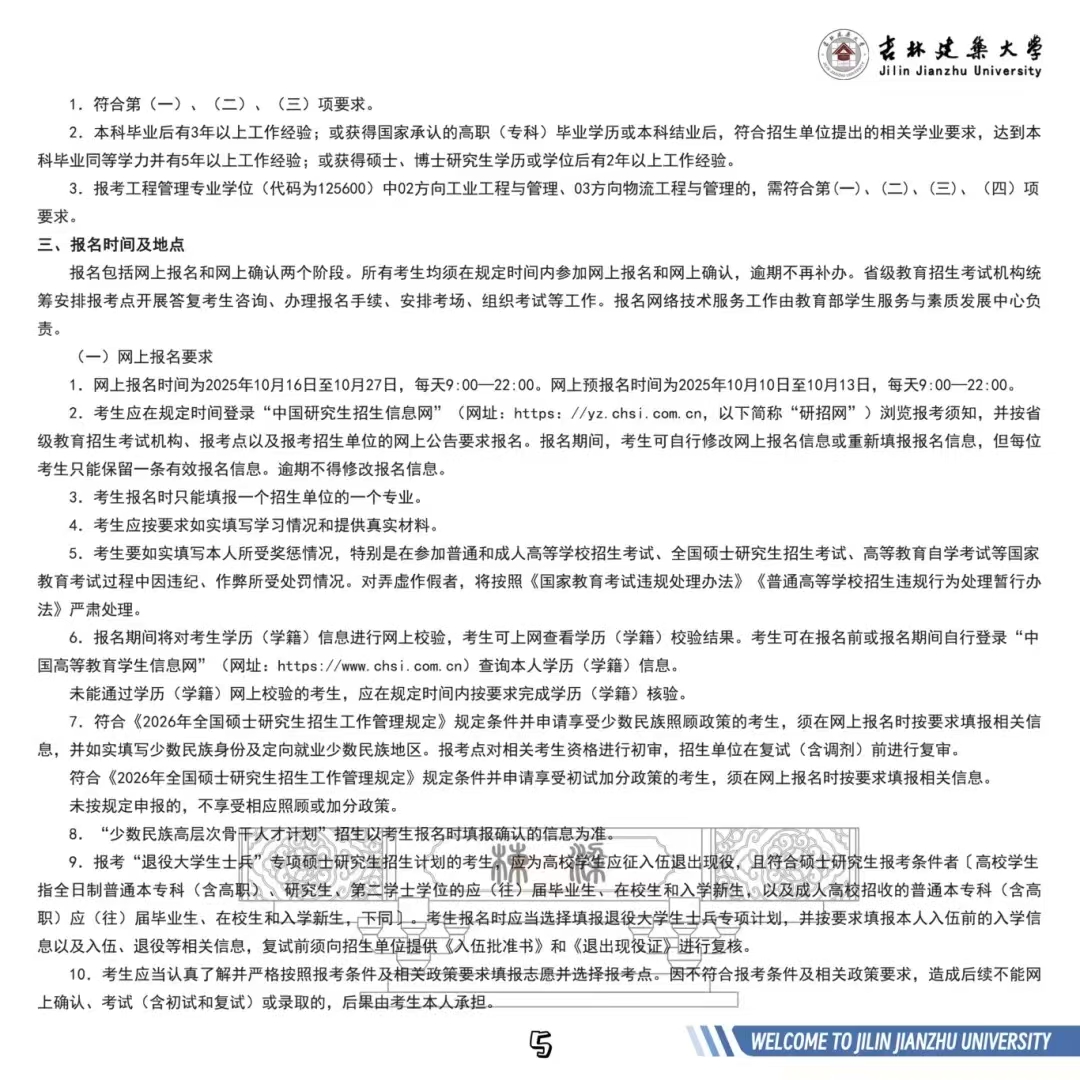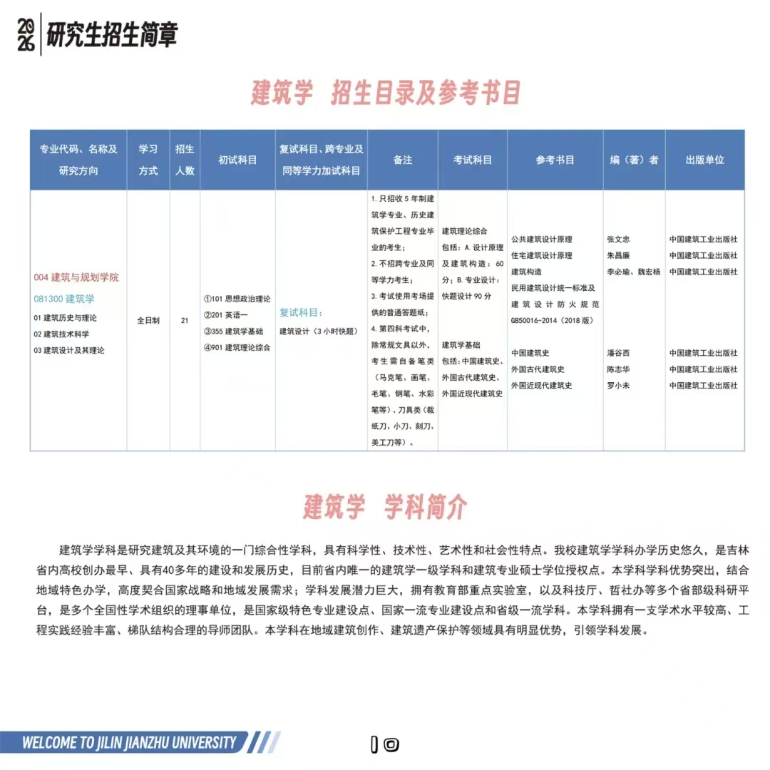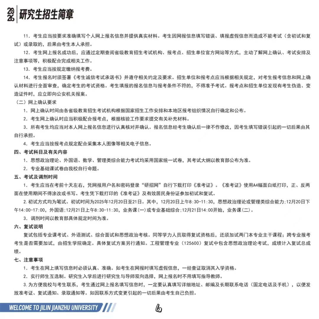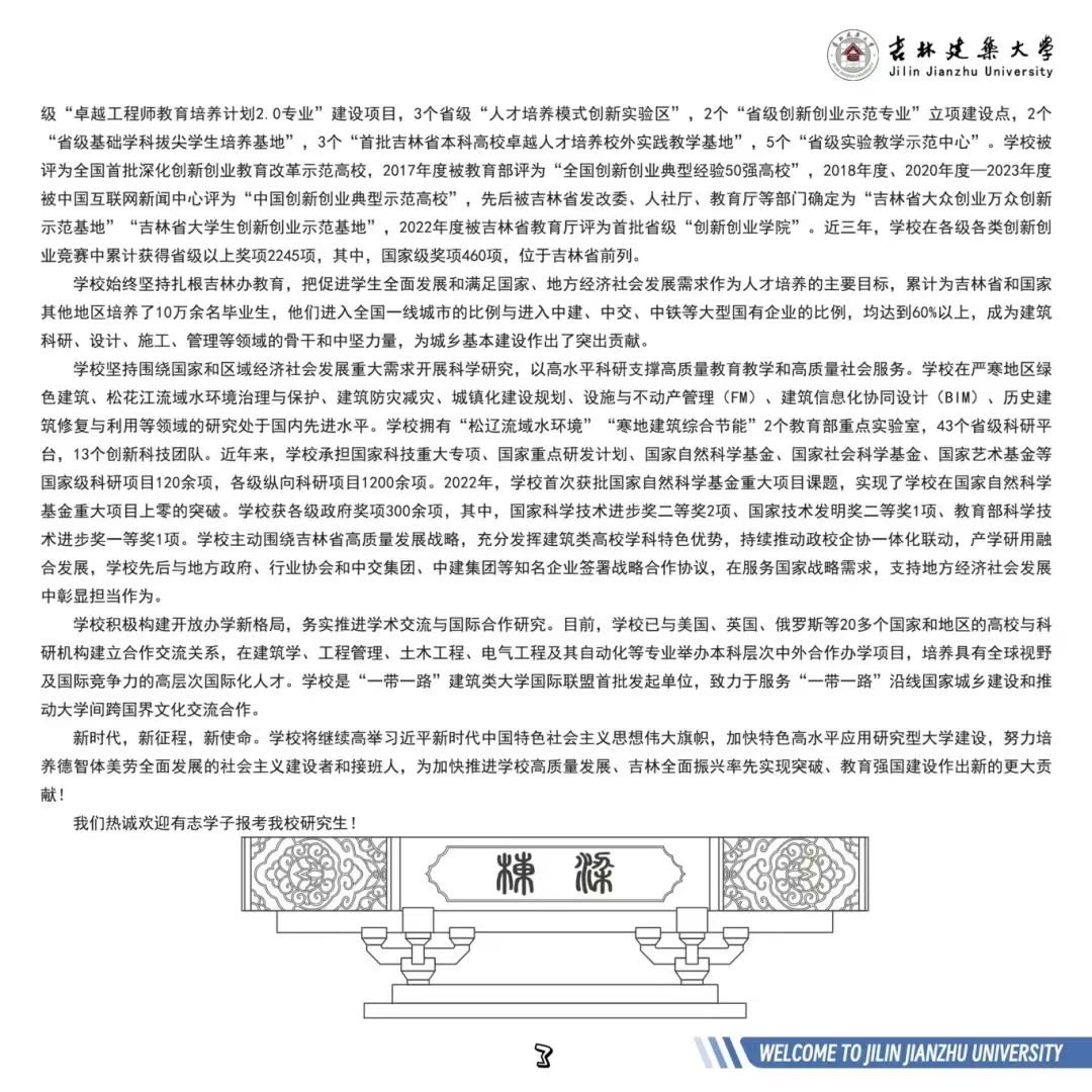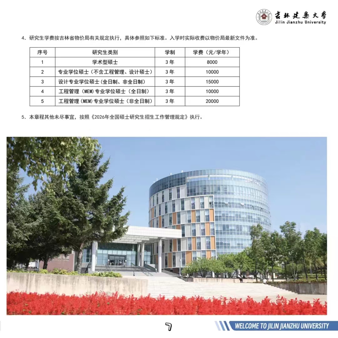 吉林建筑大学2026年攻读硕士学位研究生招生简章