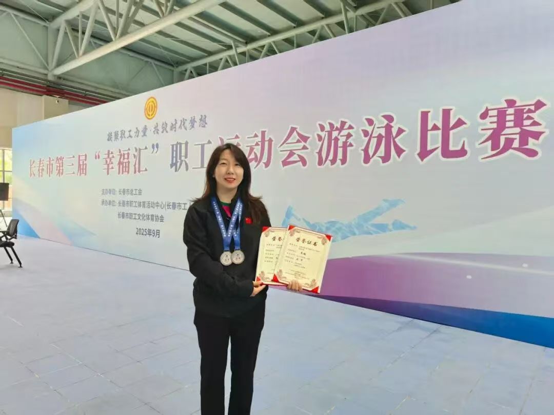 9月18日,长春市第三届“幸福汇”职工运动会游泳比赛于长春市工人体育馆游泳馆正式启幕。我校商学院教师高娅在比赛中一路劈波斩浪、奋勇争先,在女子乙组50米蛙泳、50米蝶泳两项赛事中均斩获亚军;同时,我校荣获“体育道德风尚奖”。