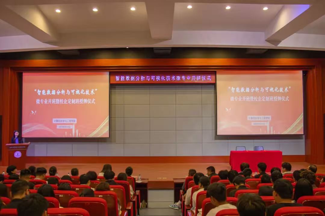 孙凤章作为企业代表发言时表示,在数字经济浪潮下,微专业是破解企业人才需求的重要支点。企业将开放数据分析与JAVA全栈开发实战平台,推动能力认证与职业指导,助力学生从“代码实现者”升级为“业务解读者”。他提到,可视化能力已成为就业竞争中的“破壁利器”,掌握数据表达工具的人才在面试与职场晋升中优势显著。