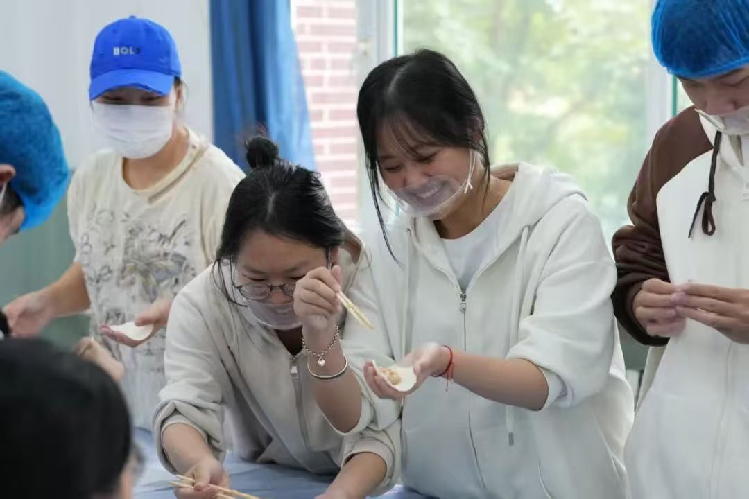 这是学校在中秋假期举办的“月揽匠心”饺子宴现场。从和面、擀皮到调馅、包制,同学们在师傅的指导下亲手实践,不少人是第一次包饺子。