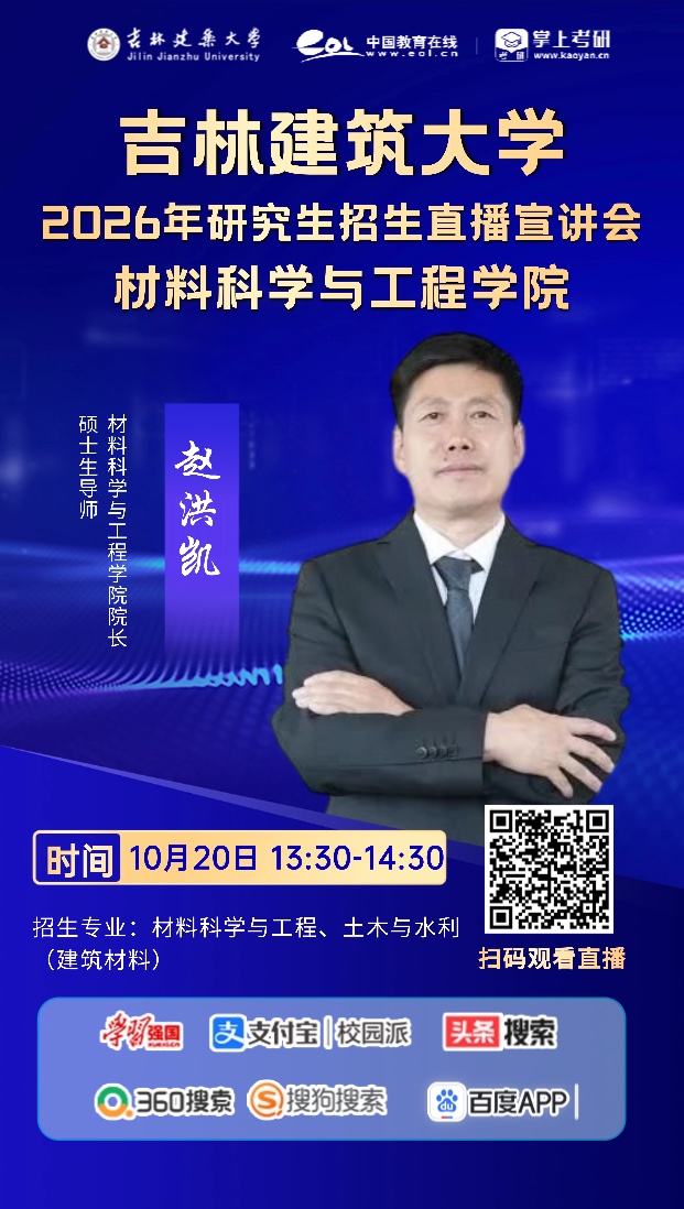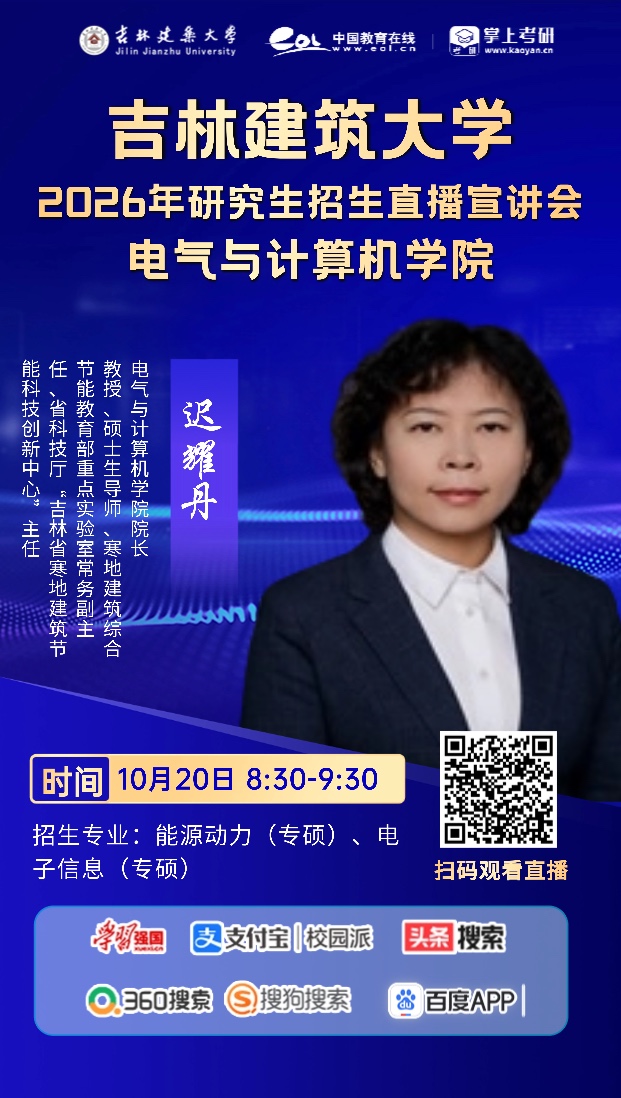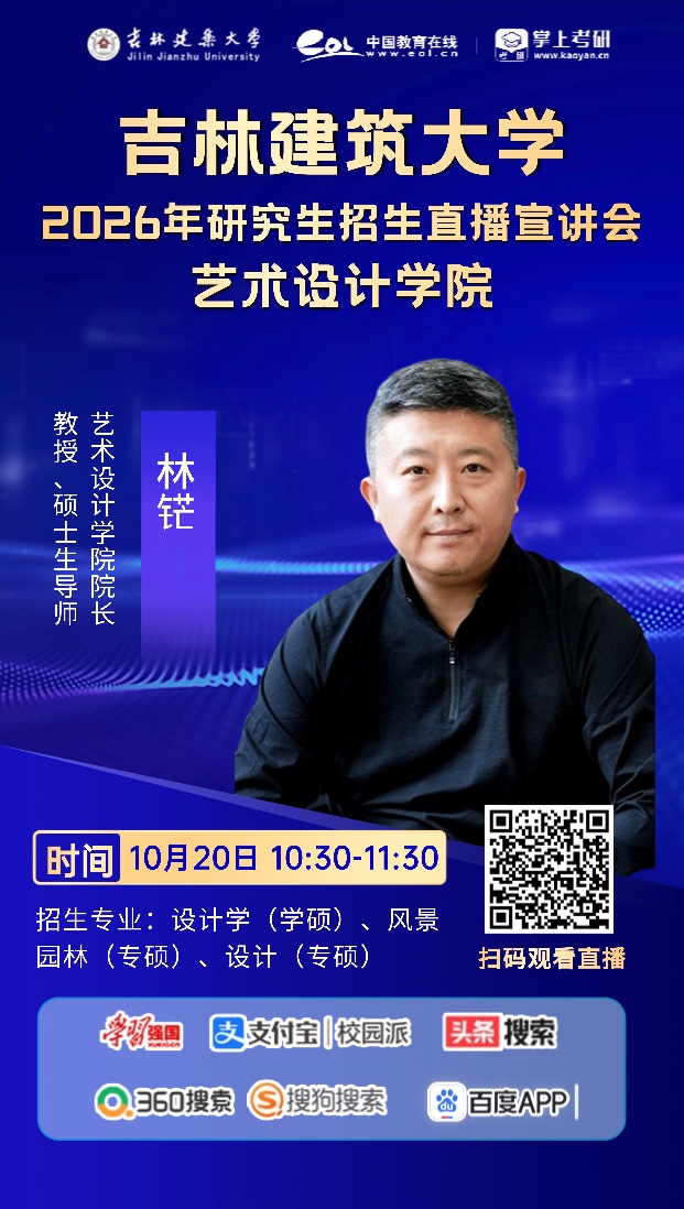 为解答广大考生的疑惑,精准服务考研学子,吉林建筑大学招生办公室将联合中国教育在线平台于近期隆重举办“2026年研究生招生直播宣讲会”。届时,各优势学科带头人及优秀导师代表将齐聚云端,这将是一场不容错过的线上盛会,为您揭开吉建研途的神秘面纱,助您开启人生新篇章!