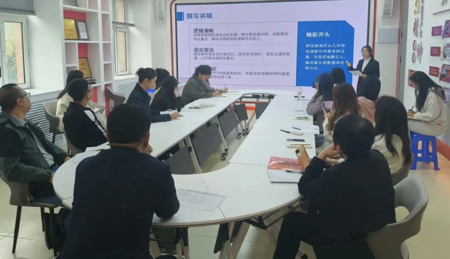 会上,曲永军就大赛的赛道特点与选择、评分标准、参赛材料的提交、比赛环节等进行了详细介绍。2024年国赛银奖项目指导教师,管理学院薛东奇老师为参赛队伍做了《新文科实践创新大赛备赛经验分享》,该获奖项目负责人潘雅薇同学以其团队的参赛历程为蓝本,从“路演经验、答辩流程”两个方面深入剖析了新文科竞赛的创新逻辑与成功要素。