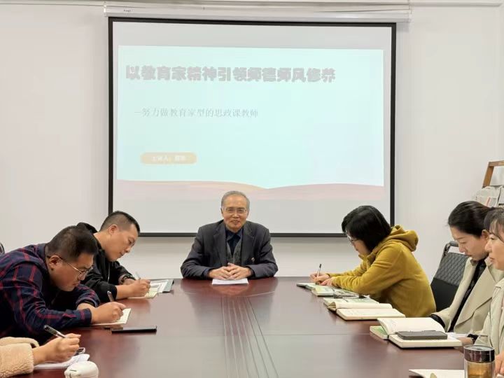为深入贯彻落实习近平总书记关于加强思想政治教育的重要论述,引导思政课教师深刻领会并自觉践行教育家精神,结合学院正在开展的“加强师德师风”建设,10月15日,马克思主义学院在教三513会议室召开教育家精神专题报告会。学院院长范军教授作题为“以教育家精神引领师德师风修养,争做教育家型思政课教师”的专题报告。教学质量监控中心主任李严、教师教学发展中心副主任朱丽新及马克思主义学院全体教师参会。