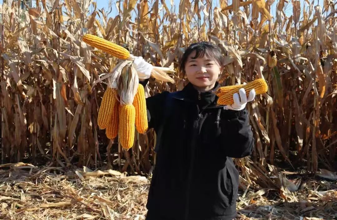 学生高高举起籽粒饱满的玉米棒,望向那片他们守护过的试验田,此时所有的激动都写在了那亮晶晶的眼睛和爱不释手的丰收果实上。