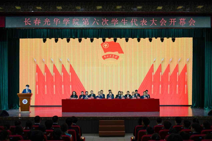 2025年10月25日,长春光华学院第六次学生代表大会开幕会在北区图书馆礼堂召开。董事长康启鹏,校长李晓光,党委书记、督导专员闫峰,副校长栾学钢,副校长陈铁,副校长厉刚,党委副书记兼副校长高海英出席,各教学院党总支副书记、团总支书记、207名学生代表及350名青年学生代表参会。开幕会由团委副书记赵闯主持。