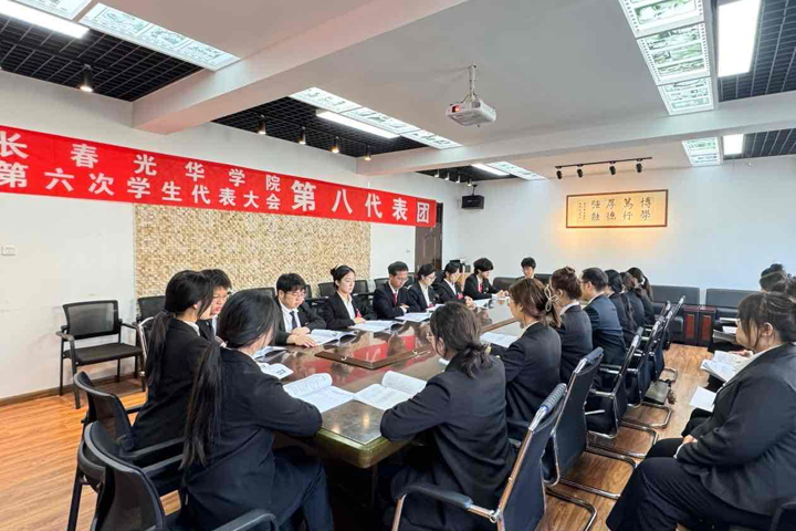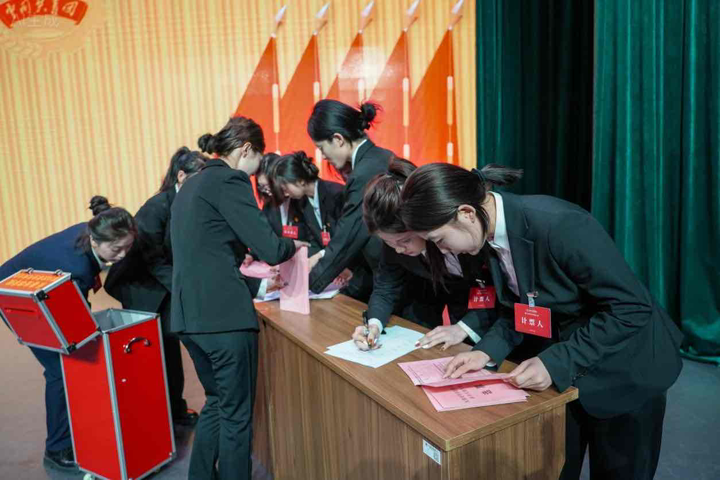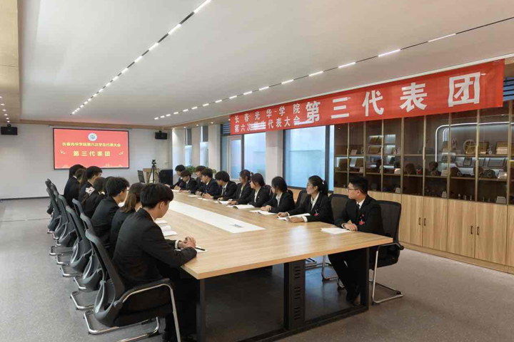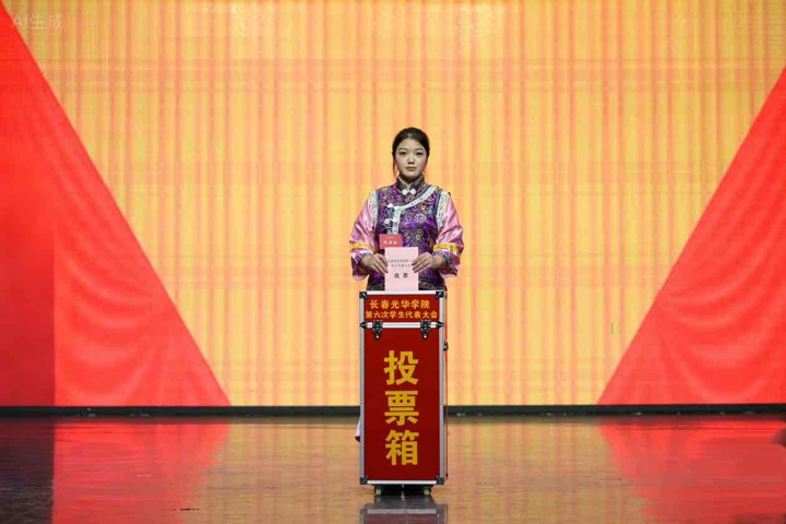 7名主席团候选人进行了竞职演说、无领导小组讨论,全体代表以无记名投票的方式,选举产生了商学院尹嘉惠、电气信息学院刘艺天淇、电影学院刘雯琪3名同学为长春光华学院第二十五届学生会主席团成员;商学院尹嘉惠、田依诺,电气信息学院刘艺天淇、杜怡霖,机械工程学院张梦、盖俊光,外国语学院王子墨,文学院曹雯博,电影学院刘雯琪,艺术设计学院吴耀、高羽彤,现代教育学院冯庆源、张清秋13名同学为长春光华学院第六次学生代表大会常任代表。