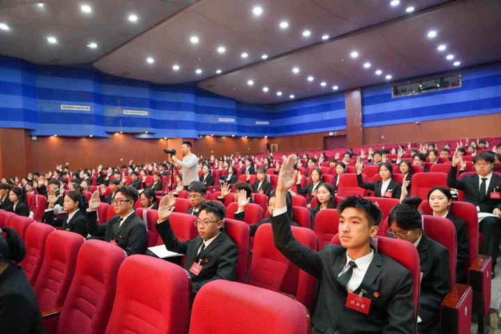 赵闯致大会闭幕词,号召全体同学以此次学代会为新的开端,既要在学业中丰富认知、塑造品格,也要在实践中增长能力、打磨技能。他强调,学生会要持续深化改革,从严治会,精准把握职责,提高工作效率,建设一支“知责于心、担责于身、履责于行”的骨干队伍,树立“想得起、找得到、靠得住、信得过”的组织形象,团结带领广大青年为学校发展注入青春动能。