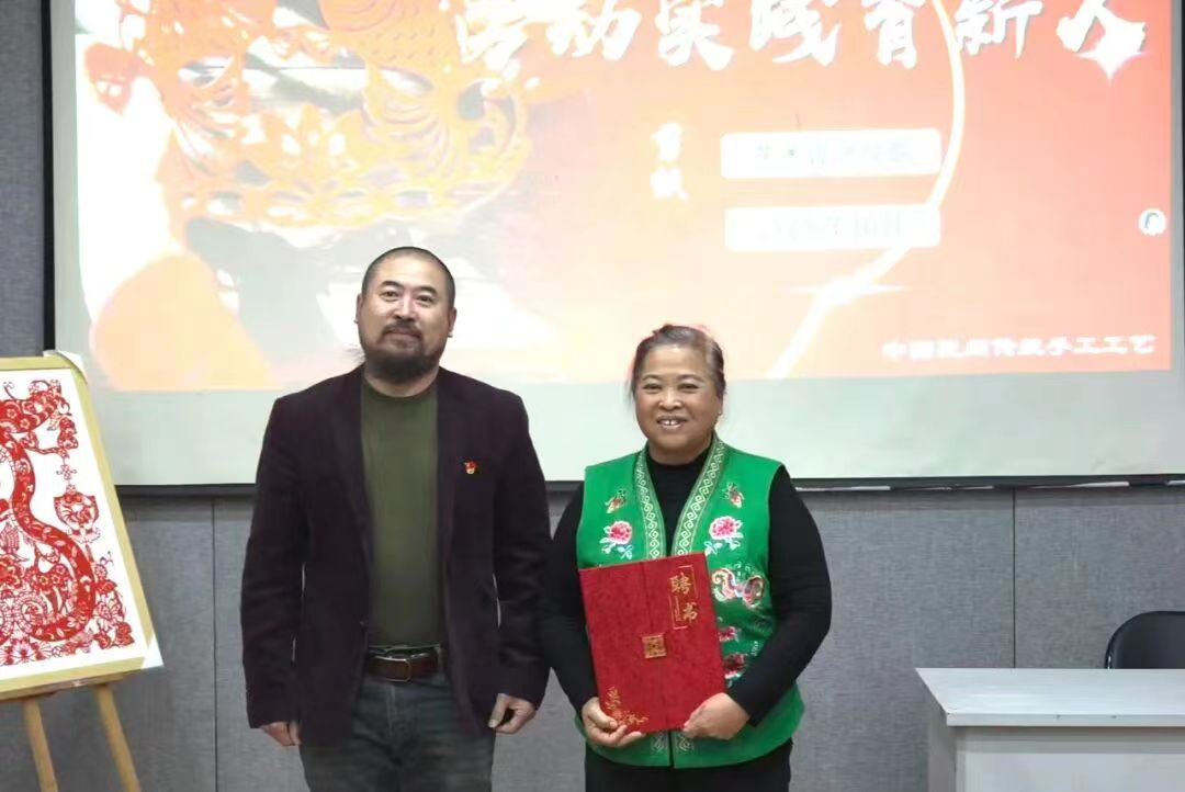 活动现场气氛热烈而庄重。王雨印代表学院,为剪纸领域专业人士孙立荣颁发教学实践导师聘书。这一举措,标志着学院在劳动教育与实践育人方面迈出了坚实的一步,为学生们搭建了与专业大师近距离学习的优质平台。