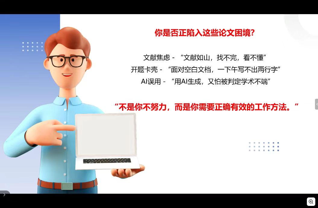 在培训中,培训老师围绕毕业论文(设计)选题与开题工作的特点与性质全面梳理了本阶段的重点事项,从选题的本质、毕业论文与毕业设计在选题上的区别、如何选择有研究价值的题目、如何选择高质量文献、合格的选题应该具备哪些素质、学术不端行为的严重后果等方面进行了全面讲解,通过精美规范的PPT演示与典型案例拆解为同学们搭建起了论文写作的基础思维框架。