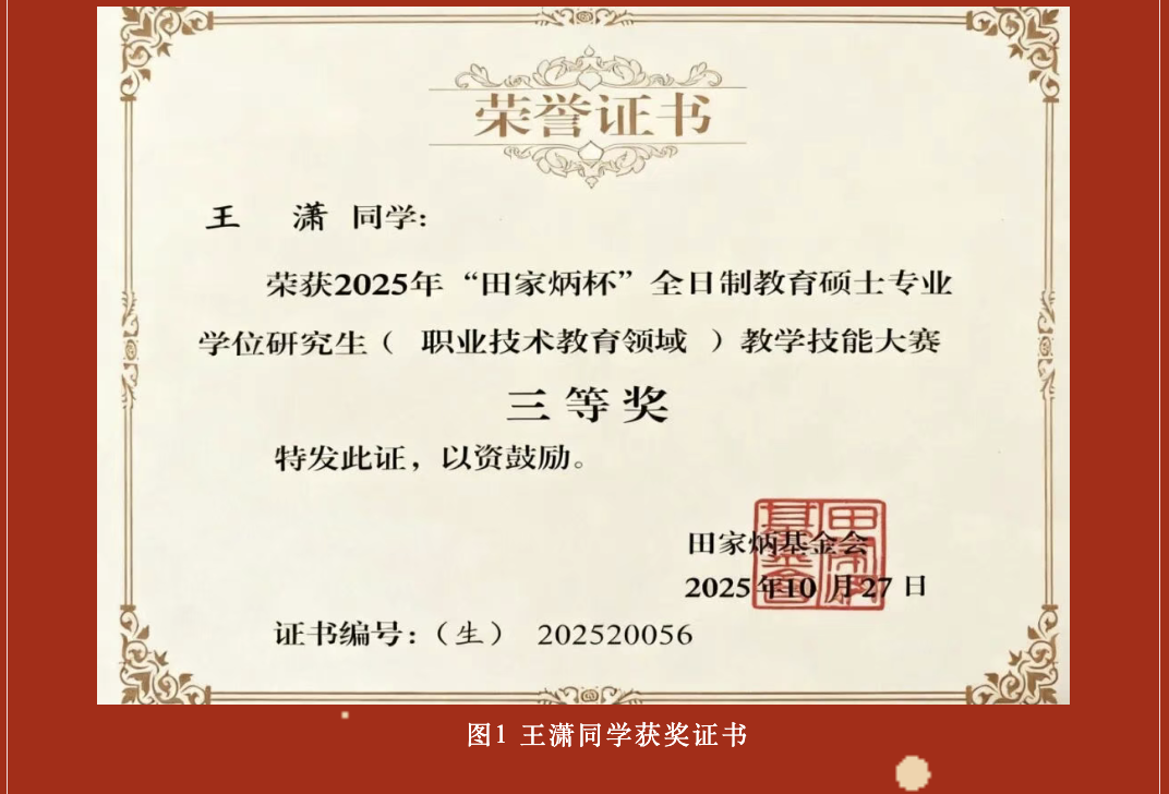 “田家炳杯”教学技能大赛是面向职业技术教育领域教育硕士的全国性权威赛事,始终秉持“以赛促教、以赛促学、以赛促改”的宗旨,覆盖装备制造、电子与信息、财经商贸等5大组别。本届大赛全国仅114人入围决赛,而三等奖获奖比例严格控制在决赛总人数的40%。