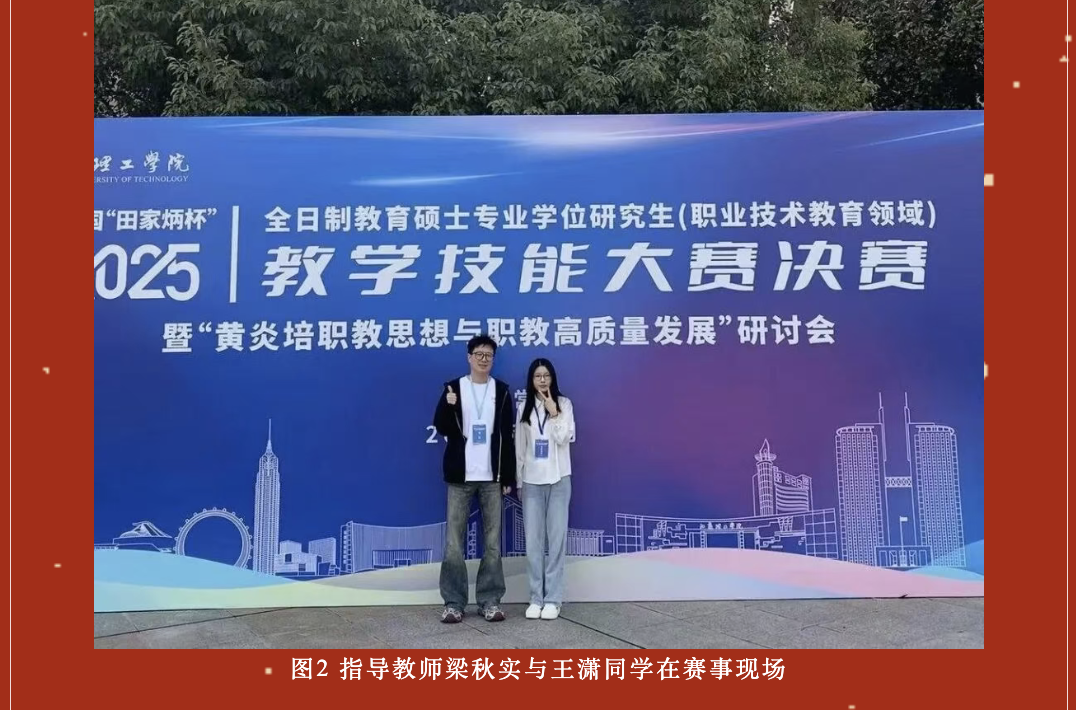 在赛制设计上,从初赛阶段需提交符合中职专业课程标准的2课时教学设计及15-17分钟原创教学视频,到决赛环节高强度现场说课与答辩,整个赛程紧密对接职业教育教学实战,全面考察选手的课程设计、课堂呈现及综合专业素养。王潇同学能在如此高规格的全国性竞赛中成功突围并斩获奖项,这既是对其个人卓越能力的充分肯定,也集中体现了吉林外国语大学在职业技术教育硕士培养方面的扎实成效与过硬质量。