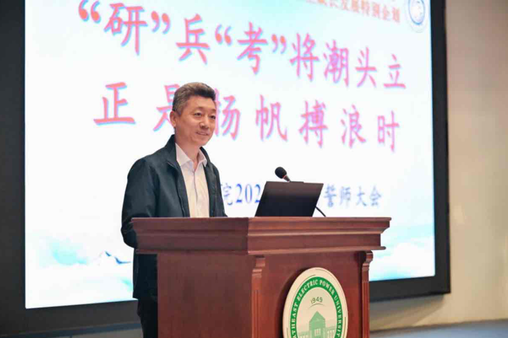 计卓221班李一鸣代表考研学生作表态发言。他深情回顾备考历程中的汗水与坚持,特别感谢学院提供的全方位保障。院长李建坡在动员寄语中对同学们长期以来的辛勤付出表达充分肯定与由衷敬佩。他指出,考研不仅是对知识的检验,更是对意志的淬炼,鼓励同学们坚定信念、科学规划、调整心态、保重身体,以最佳状态迎接挑战。他强调,学院永远是同学们最坚实的后盾,将持续提供资源支持与贴心服务,陪伴大家走好备考“最后一公里”。