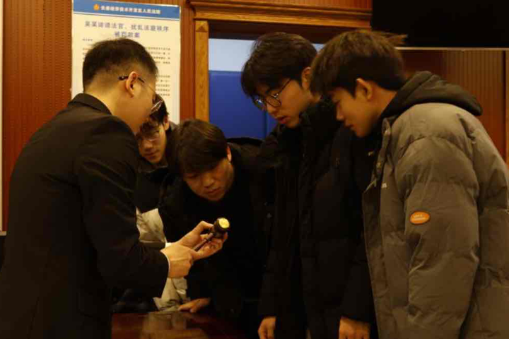 活动中,经开法院干警王华艺为同学们系统讲解了法院的文化建设理念与“法”字的演变历程,引导大家深刻感悟宪法作为国家根本法的权威与温度。同学们神情专注,不时记录要点,展现出浓厚的学法热情。在诉讼服务中心,王干警详细介绍了立案流程与司法便民举措。大家通过实地观摩,不仅了解了法院工作的规范与高效,也进一步认识到法治建设对于服务群众、促进社会和谐的重要作用。
