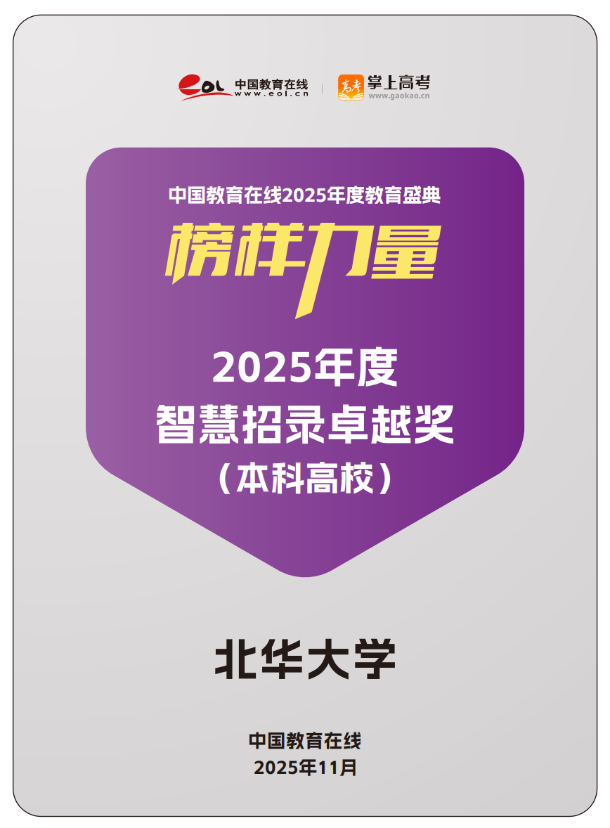 近日,中国教育在线“榜样力量·2025年度教育盛典”优秀案例名单公布。北华大学凭借在招录工作中对智慧招录相关技术工具的高水平运用及卓越成果,获评“2025年度智慧招录本科高校”。