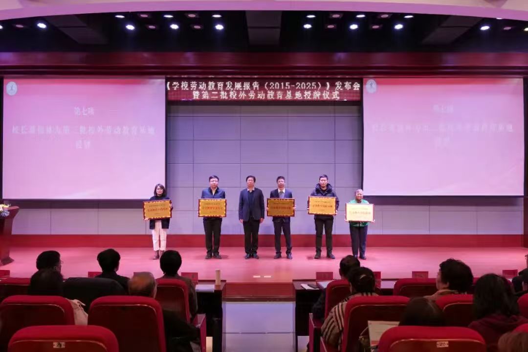 校长潘福林为各基地单位代表授予授牌。此次新增授牌基地涵盖“红色劳动传承、乡村振兴实践、智能劳动体验、志愿服务实践、非遗文化传承”五个类别,将进一步拓宽劳动教育实践边界,为学生提供“在田间地头学劳动、在工厂车间悟技能、在红色沃土铸信念”的多元化场景。