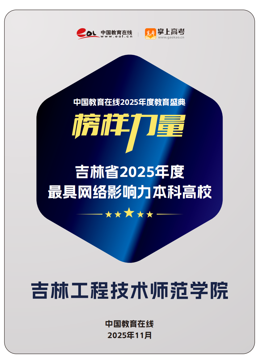 此奖项不仅是对吉林工程技术师范学院招生宣传工作的高度肯定,更彰显了吉林工程技术师范学院在教育数字传播浪潮中,引领高校网络形象塑造、信息传播新范式的卓越能力与突出贡献。