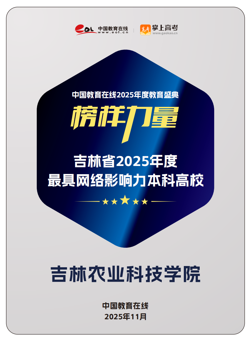 此奖项不仅是对吉林农业科技学院招生宣传工作的高度肯定,更彰显了吉林农业科技学院在教育数字传播浪潮中,引领高校网络形象塑造、信息传播新范式的卓越能力与突出贡献。