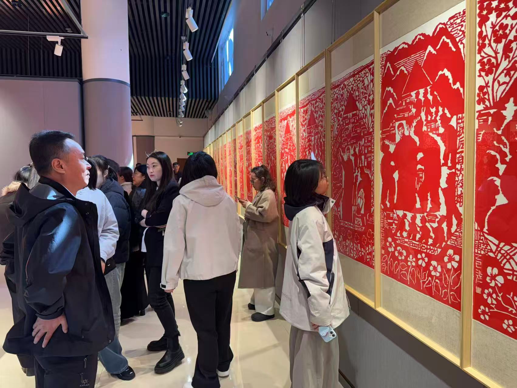 展览现场,众多参观者在作品前久久伫立,认真聆听讲解员讲述作品背后的故事,在感受撕纸艺术独特魅力的同时,了解那段波澜壮阔的历史。