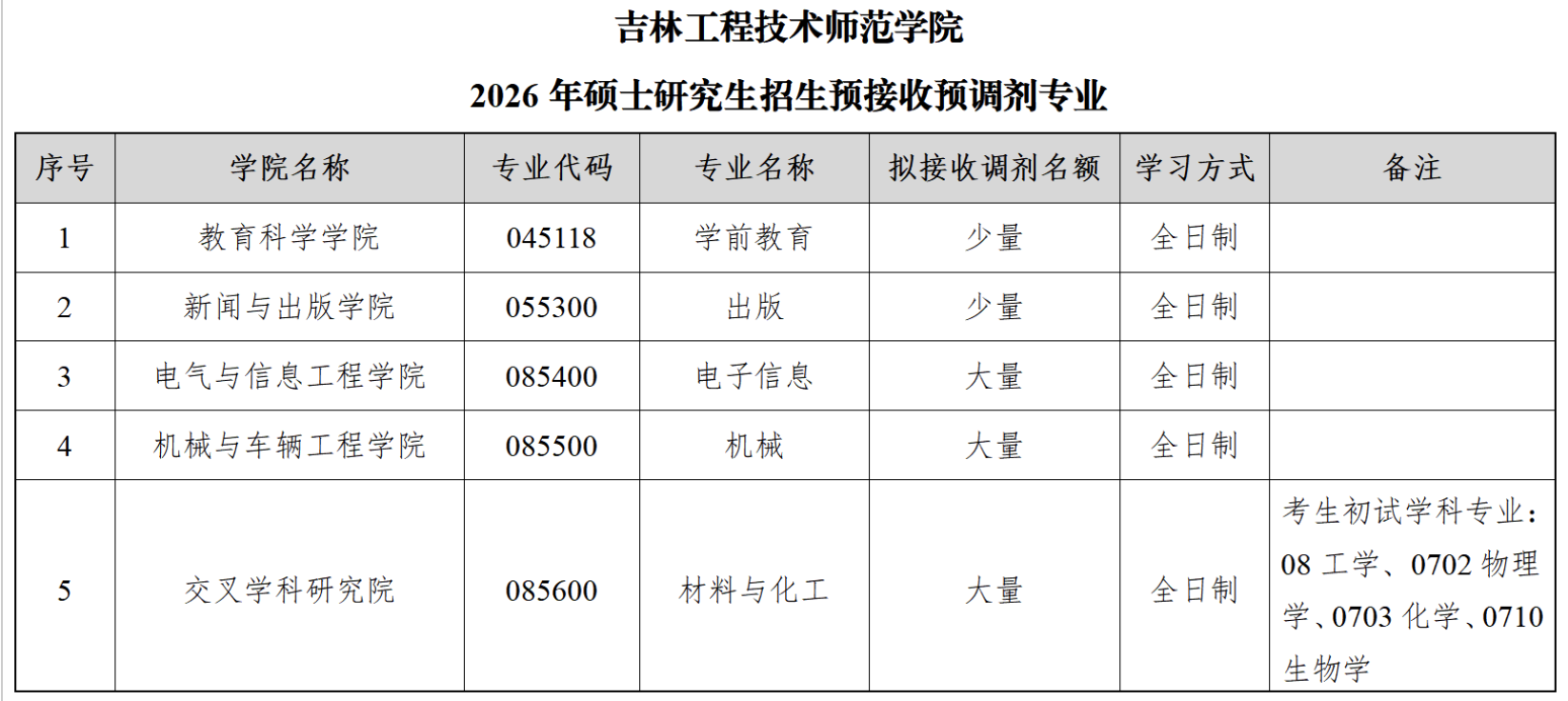 3.调剂考生第一志愿专业原则上应与调入专业相同相近,或初试科目与调入专业初试科目相同相近,并符合吉林工程技术师范学院在调剂系统公布的调剂专业范围及相关要求。