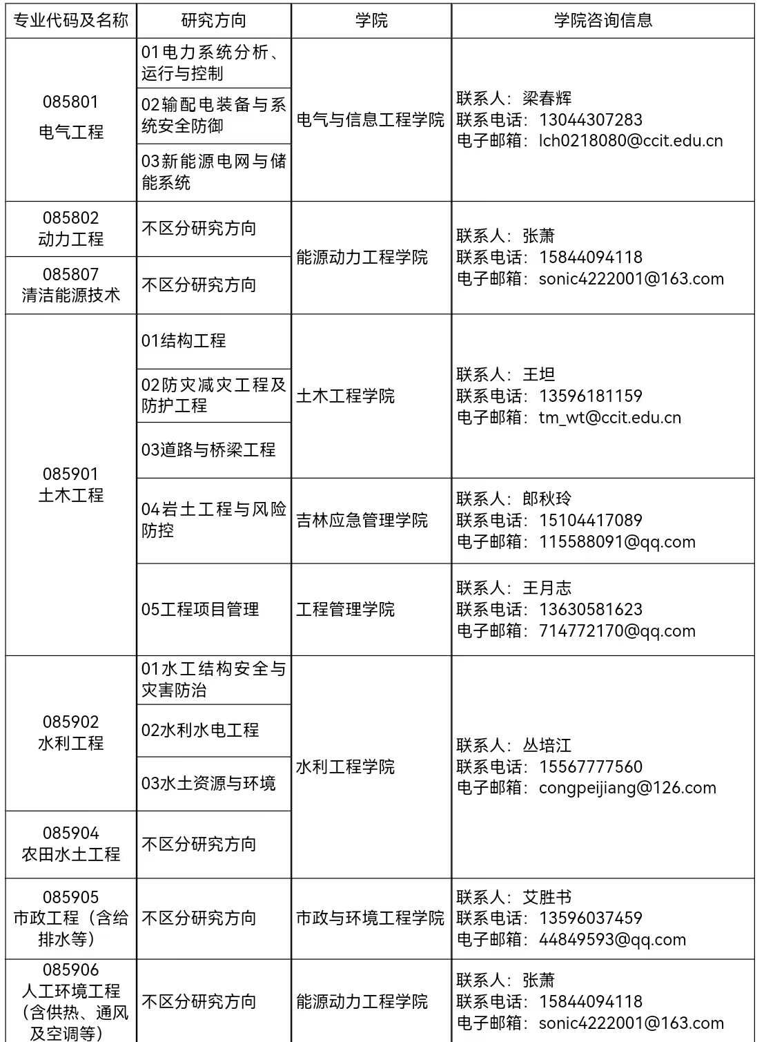 长春工程学院2026年具体调剂专业及研究方向如下表所示: