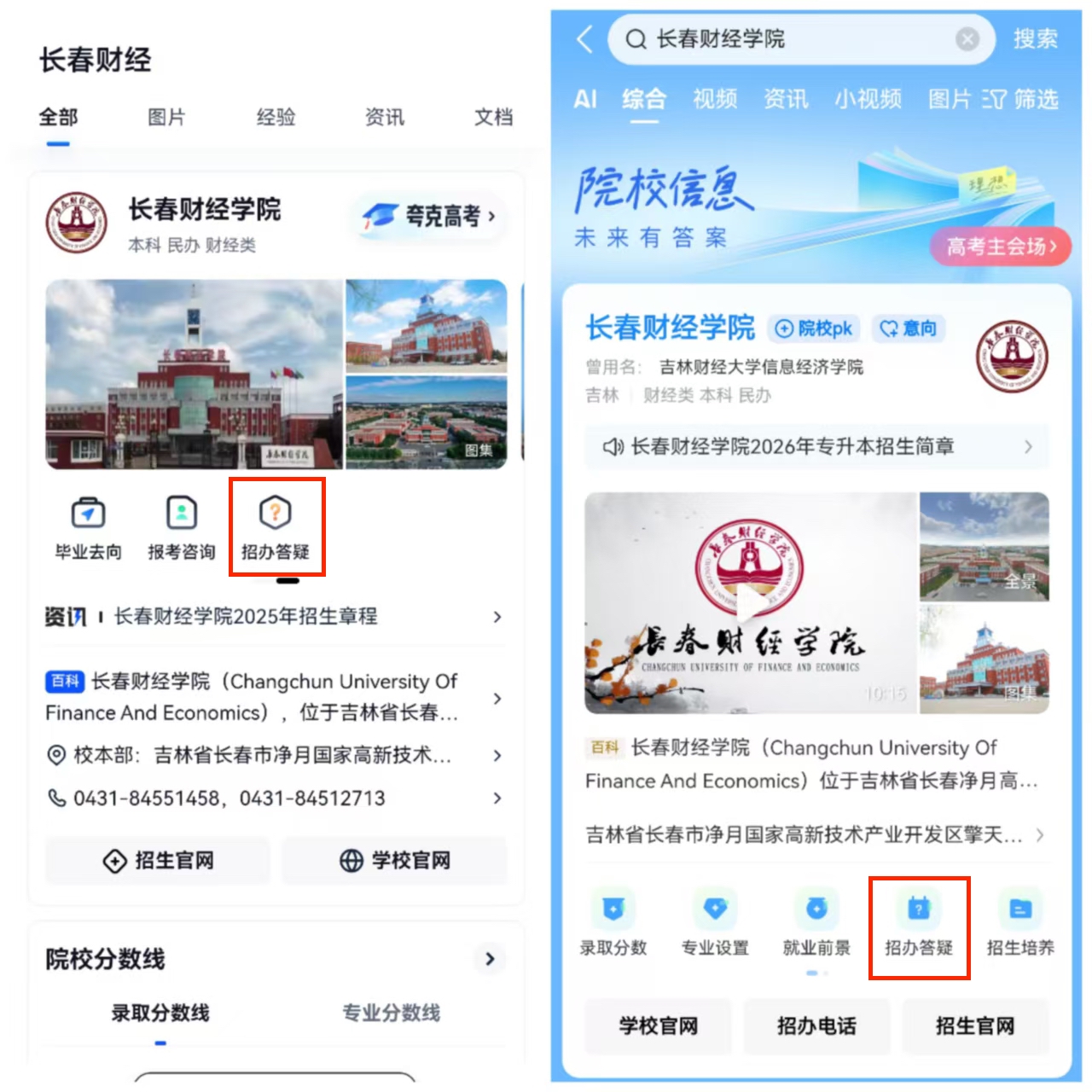 此外,也可通过掌上高考、百度、今日头条、夸克等平台随时向长春财经学院咨询。