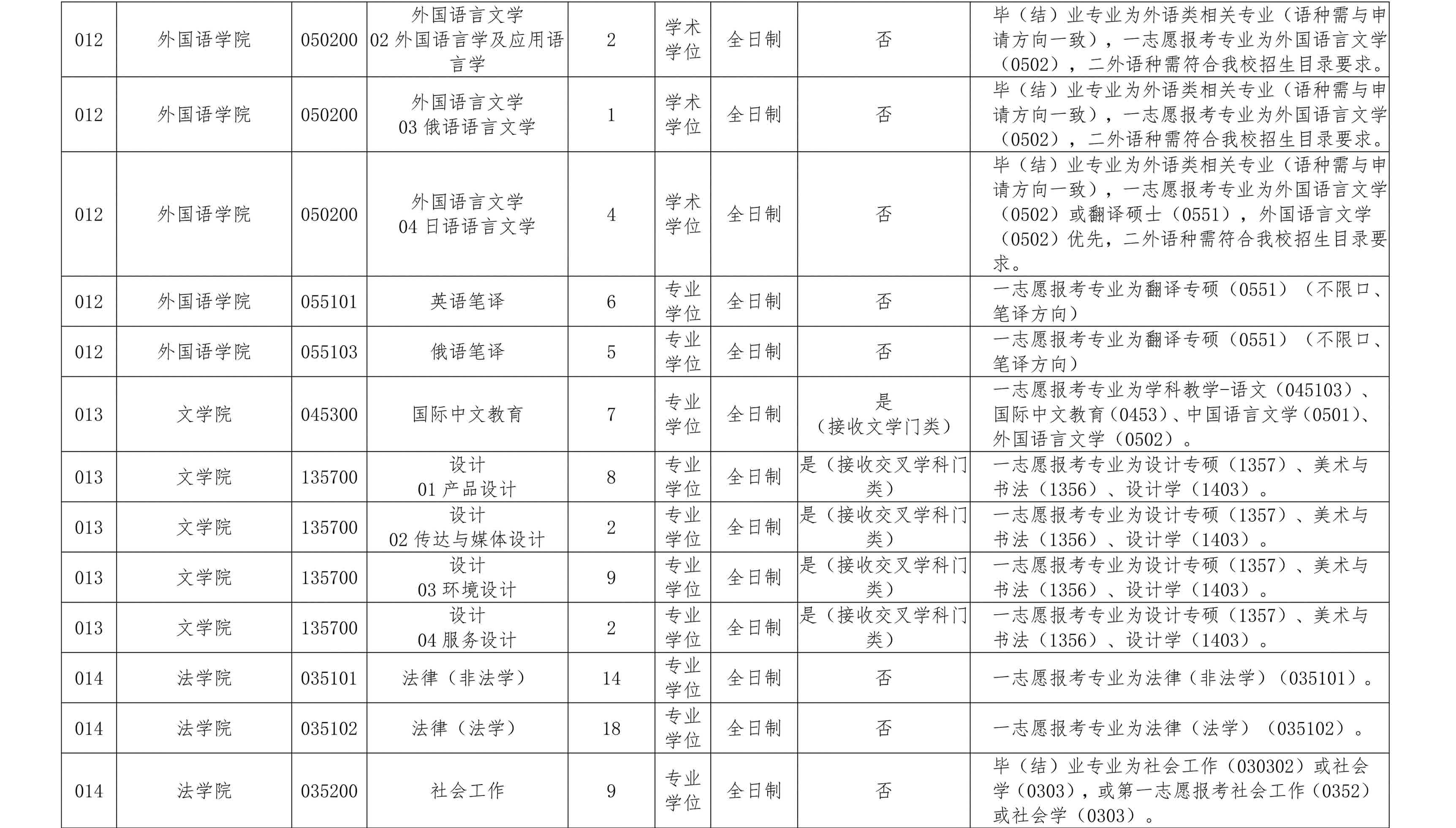 3.外国语言文学专业调剂生,如一志愿报考专业未考二外,请在备注中注明二外语种。