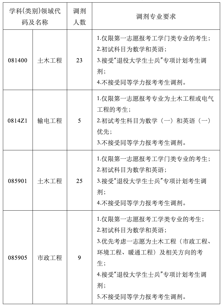 3.考生在照顾专业与非照顾专业之间调剂,其初试成绩均须符合建筑工程学院第一志愿报考专业所在学科门类的非照顾专业国家分数线;