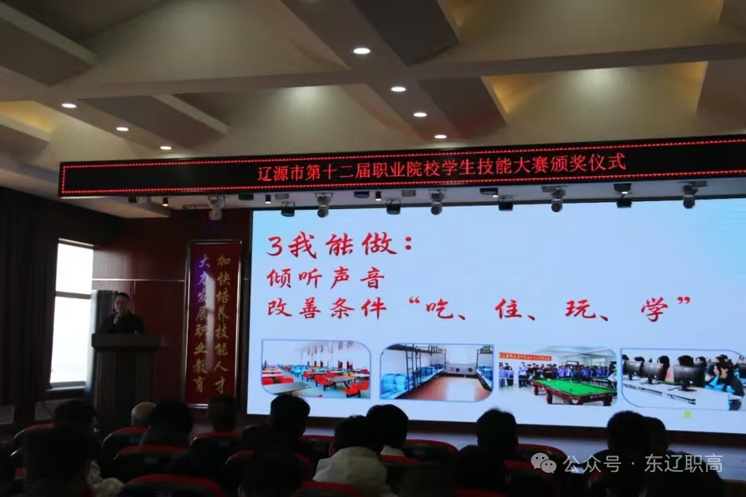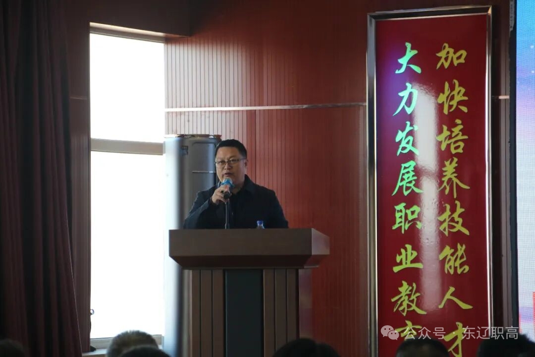 “在东辽职高,老师不是高高在上的管理者,学生也不是被动的学习者,我们是朝夕相处的家人。” 讲座开篇,王朋力校长就打破了传统校会的距离感。他分享了自己日常巡查宿舍时的经历:看到学生因想家偷偷抹泪,班主任主动陪其谈心;实训课上,老师手把手教操作,直到学生掌握技巧……“这些小事,都是‘家人情’的体现。” 王校长强调,学校希望打造有温度的校园,让每一位同学都能感受到家的温暖,遇到困难时,无论是学习上的困惑,还是生活中的烦恼,都能主动找老师、找学校倾诉,“我们永远是大家的后盾”。