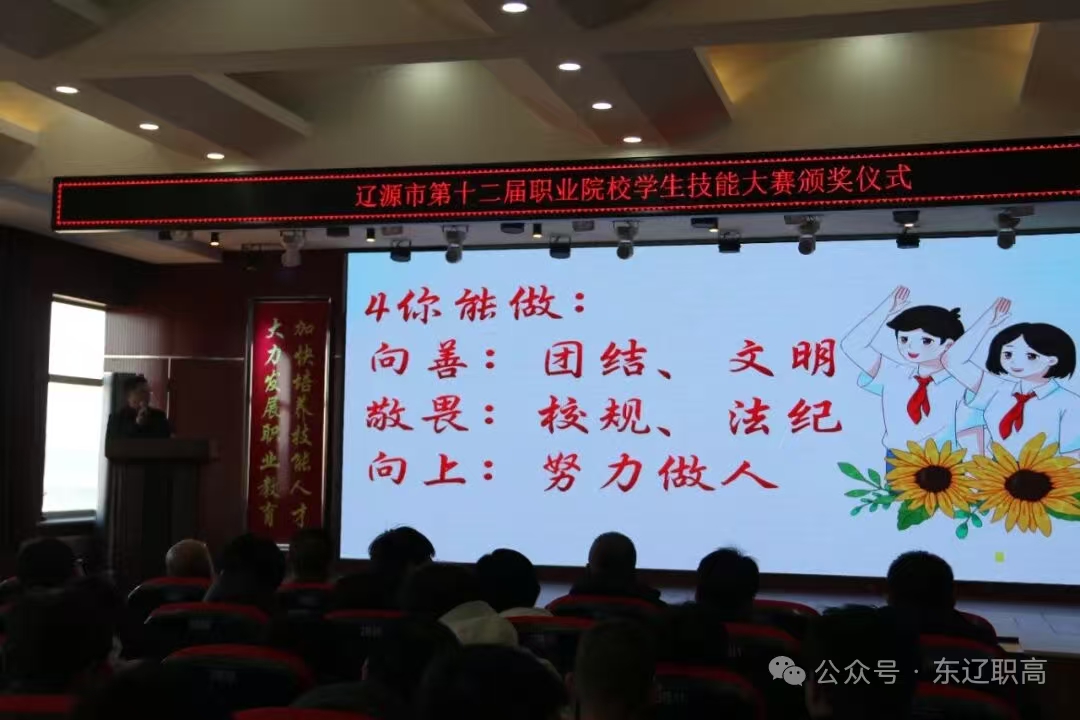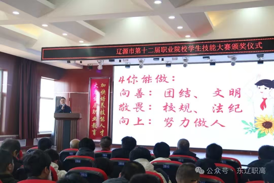 “学校为大家创造好条件,更需要同学们一起努力,把东辽职高建设得更好。” 在对学生的期望部分,王朋力校长提出了四点要求。一是 “讲团结”:同学之间要互帮互助,实训小组里分工协作,遇到矛盾多包容,像一家人一样携手进步;二是 “守文明”:不乱扔垃圾、不喧哗打闹,从主动向老师问好、爱护校园设施等小事做起,展现职教学子的素养;三是 “遵校纪”:校规校纪不是束缚,而是保障大家学习生活有序的 “底线”,无论是考勤制度,还是实训安全规范,都要严格遵守;四是 “努力做人”:技能重要,人品更重要,要学会感恩父母、尊重老师、诚信待人,先做品德端正的人,再做技能过硬的才。