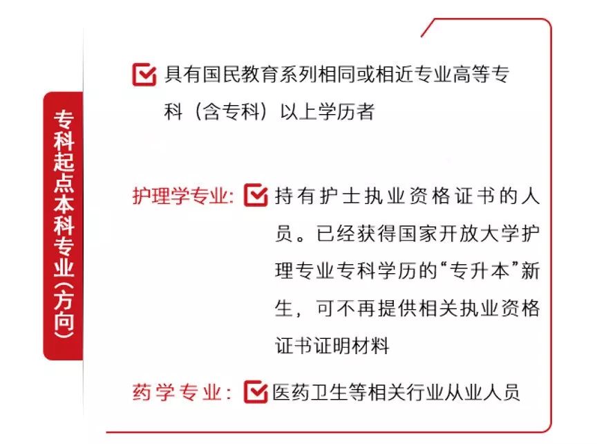 报读专、本科的学生应提供本人身份证正反面及前置毕业证的原件扫描件;报读本科还需提供学信网上下载的教育部学历证书电子注册备案表电子版(PDF)。护理学专业还需要提供护理执业资格证书和在岗证明的原件扫描件,药学专业需要提供在岗证明的原件扫描件。在四川省工作、居住的异地学生(外省户籍)需要到校合影,并提供省内居住证明或工作证明。