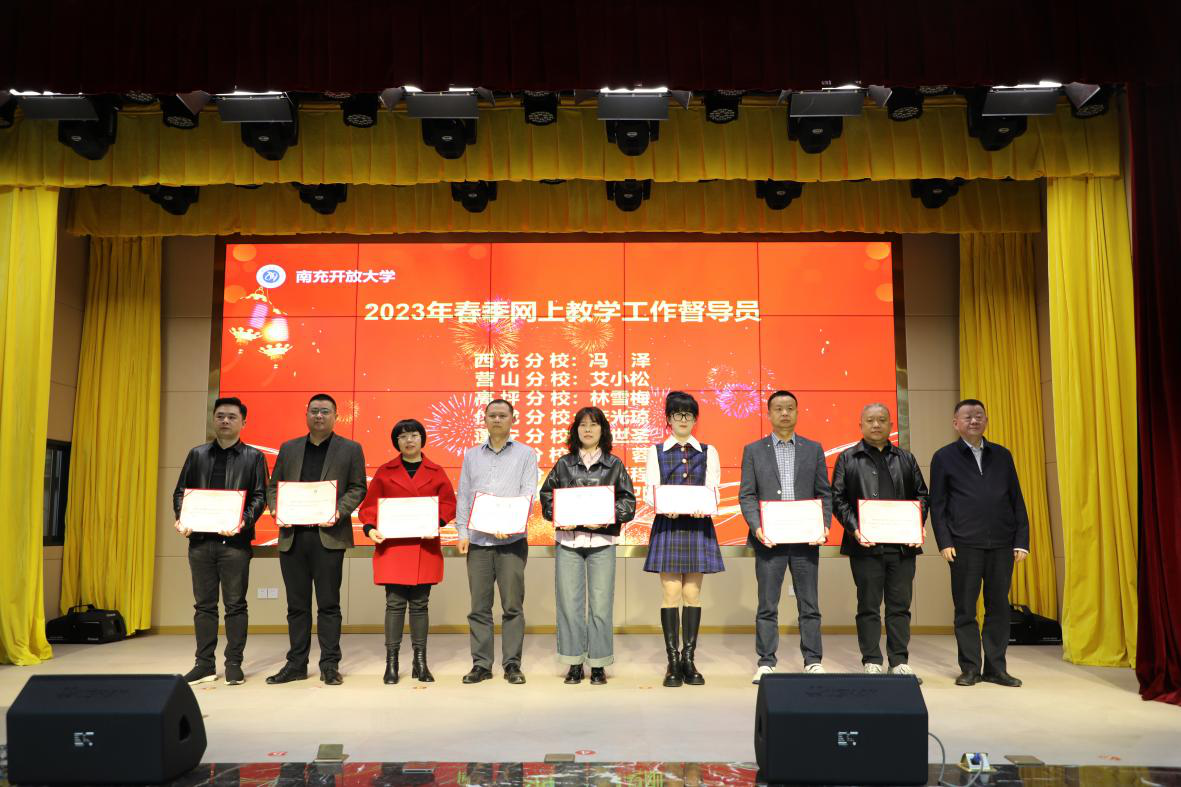 会议还表扬了2022年秋季“网上教学优秀组织者”“优秀课程辅导教师”,为冯泽、艾小松、林雪梅、李光琼、吕世圣、李蓉、李远程、肖卫刚等8位县级分校网上教学工作督导员颁发了聘书。参会人员还集体观看了三个专题片:普通话水平测试站、职能技能等级认定中心和“实干成就梦想,奋斗铸就辉煌”。
