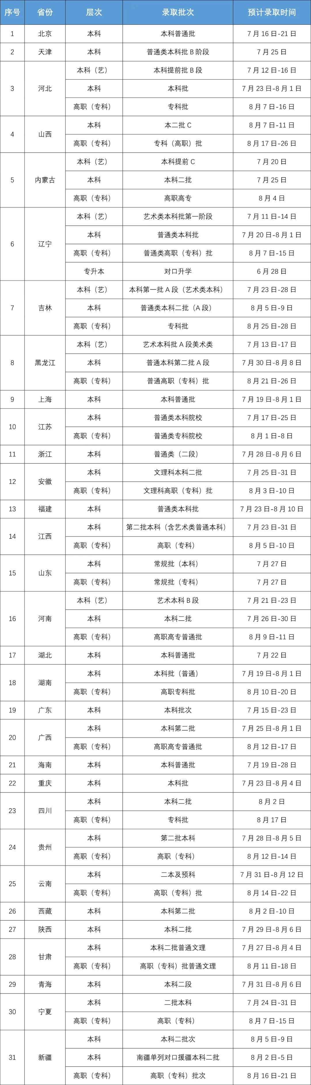 * 以上时间供参考,最终以各地区招生考试办/教育考试院实际安排为准。