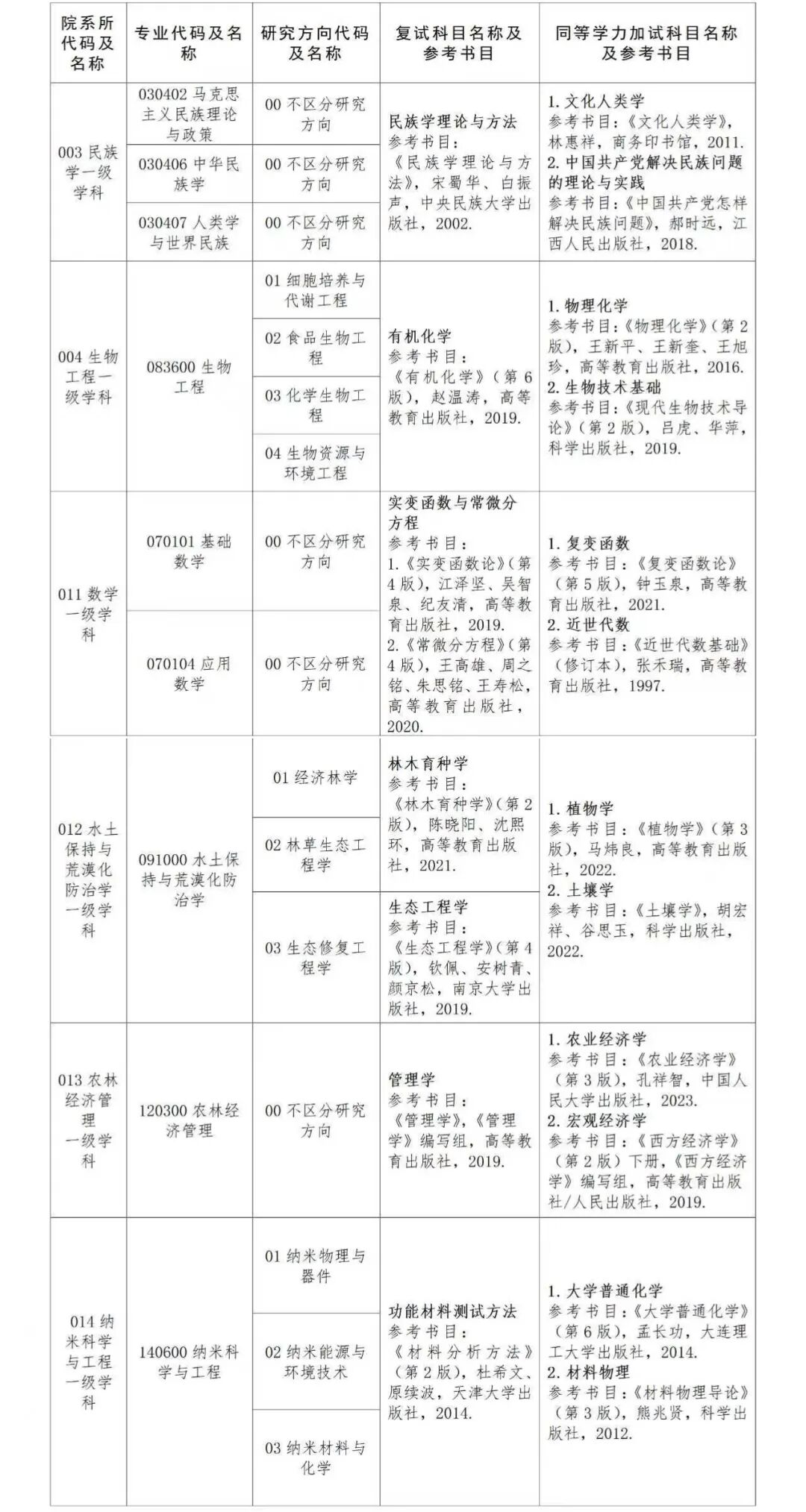 大连民族大学2026年硕士研究生招生复试(含同等学力加试)科目及参考书目