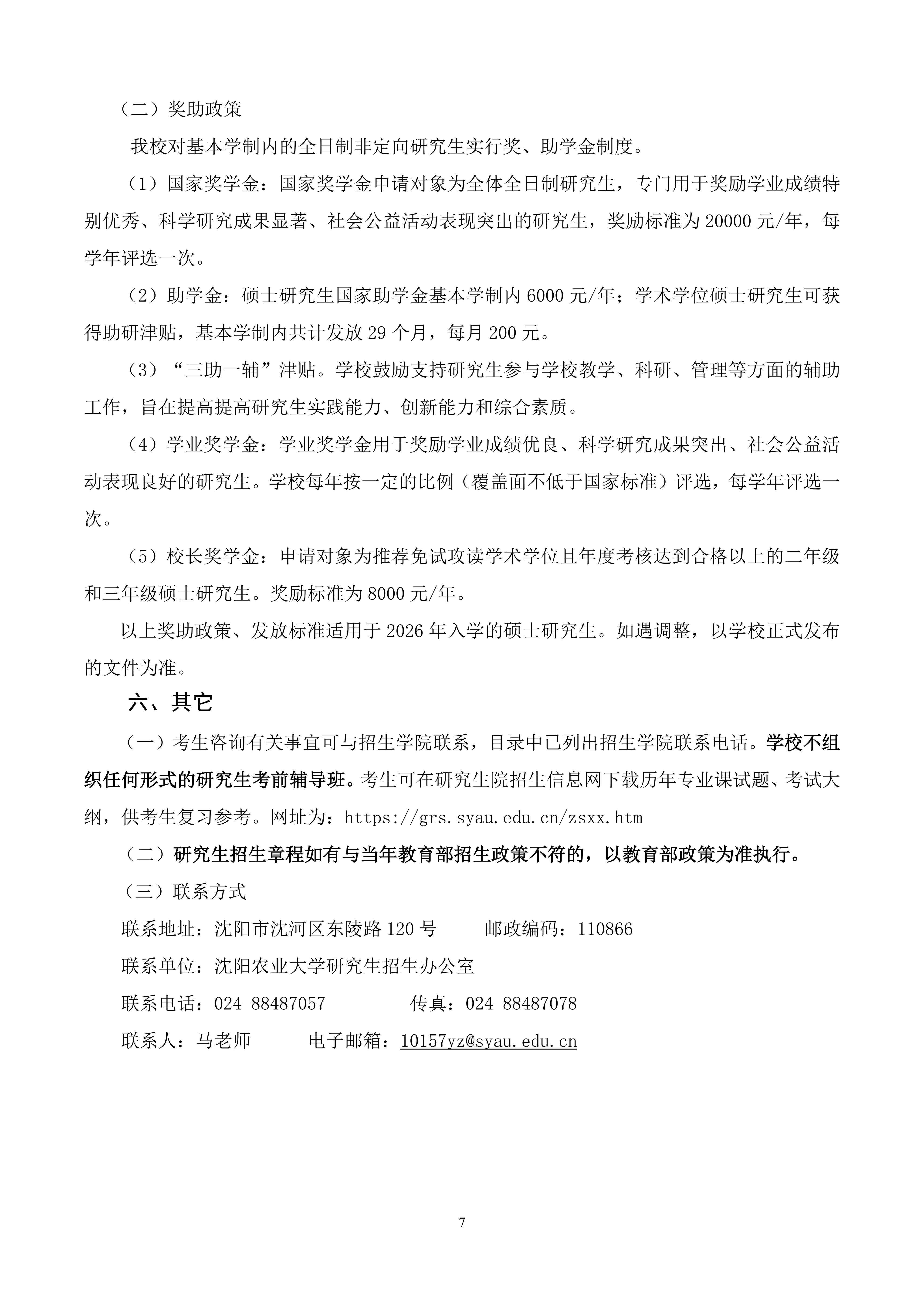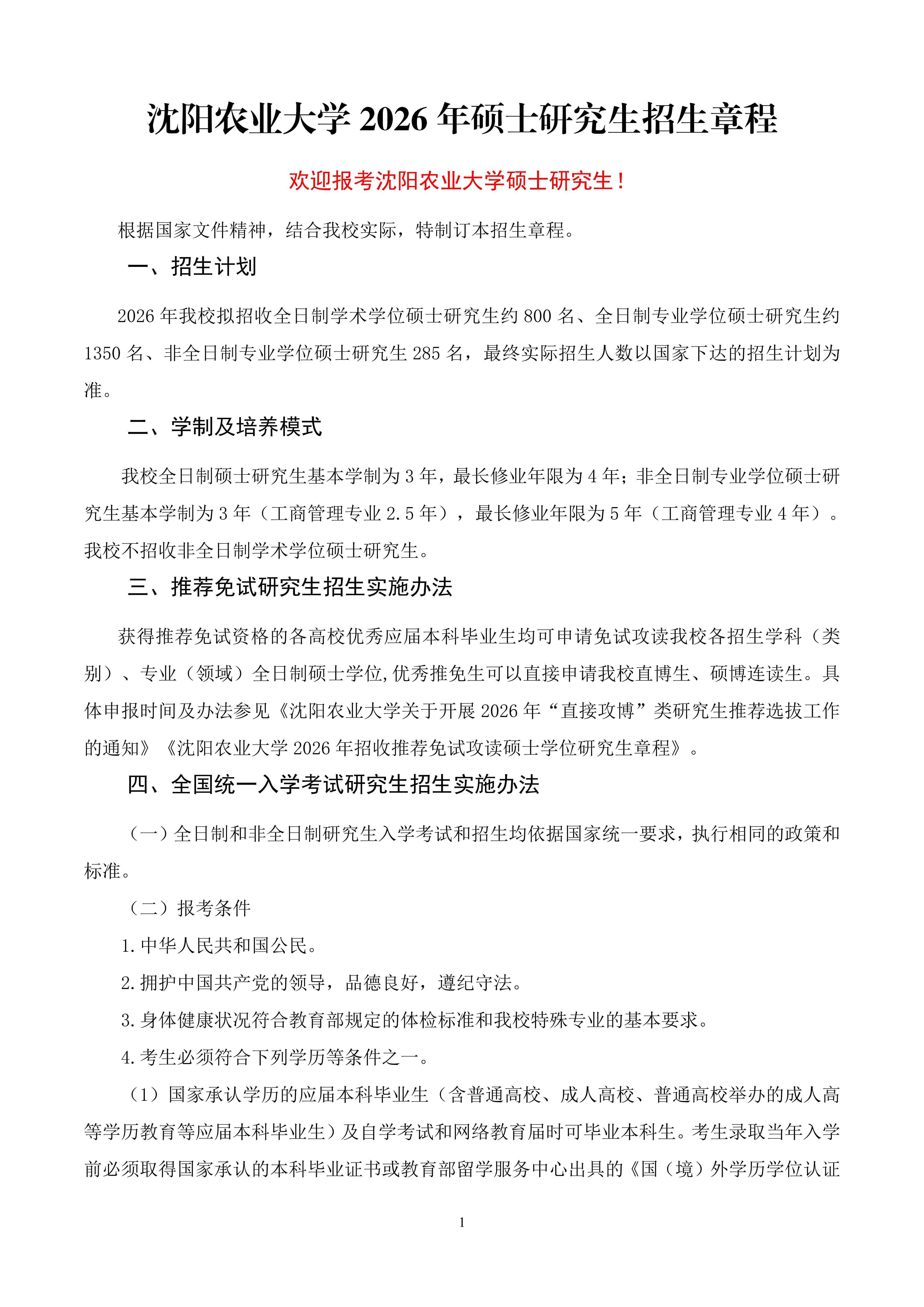 沈阳农业大学2026年硕士研究生招生章程